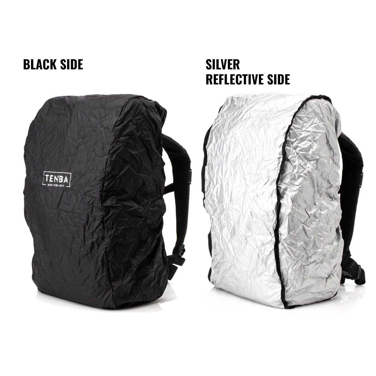 - De meegeleverde losse regenhoes is aan twee zijden te gebruiken; zilver voor bescherming tegen de zon en zwart voor een discrete look.
