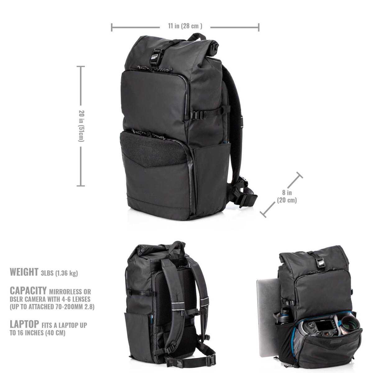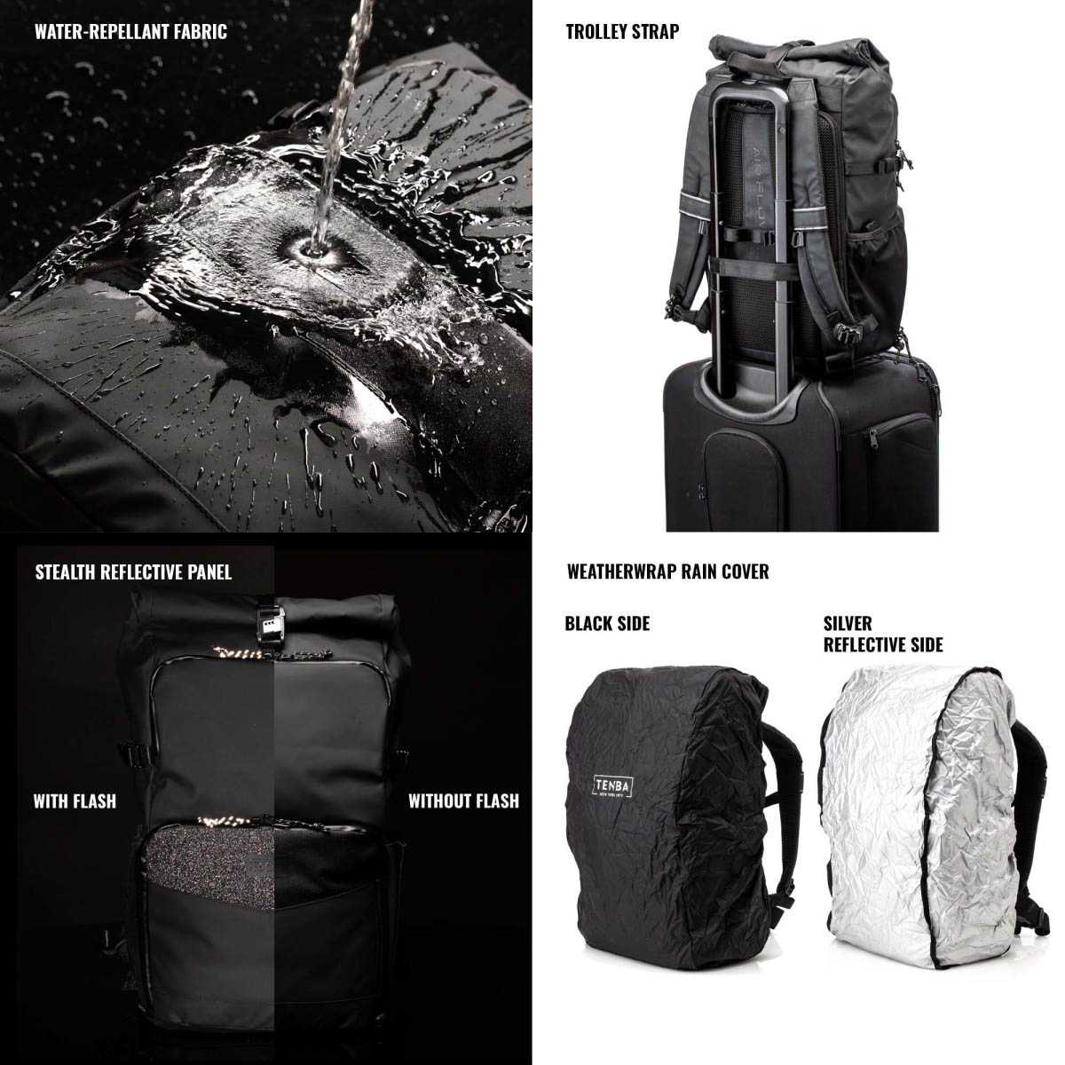 - Comfortabel Airflow harnas: het Airflow harnas bestaat uit ventilerend 3D airmesh en Tenba’s Pivot-Fit automatisch verstelbare riemen voor een comfortabele pasvorm.