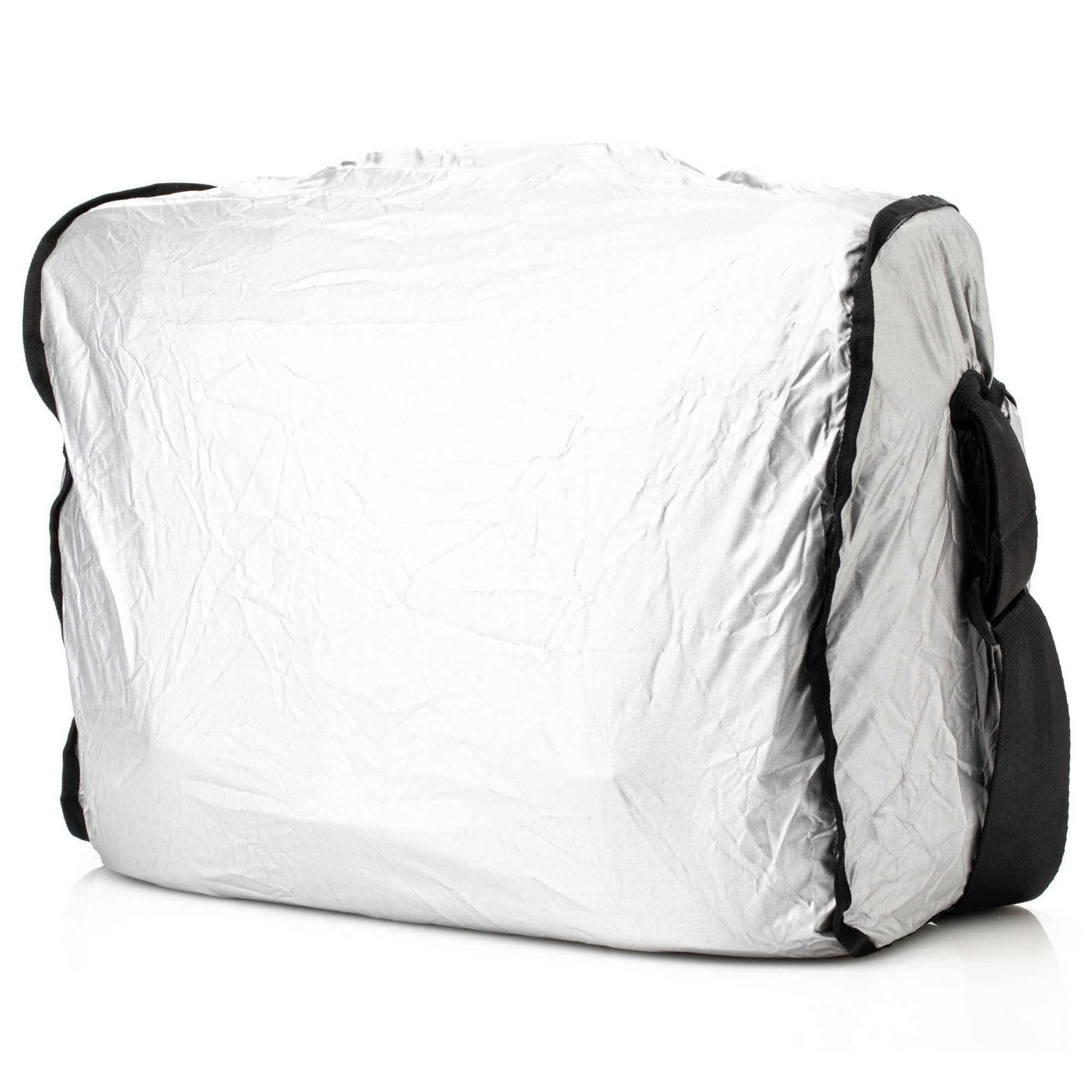 - De meegeleverde losse regenhoes is aan twee zijden te gebruiken; zilver voor bescherming tegen de zon en zwart voor een discrete look.