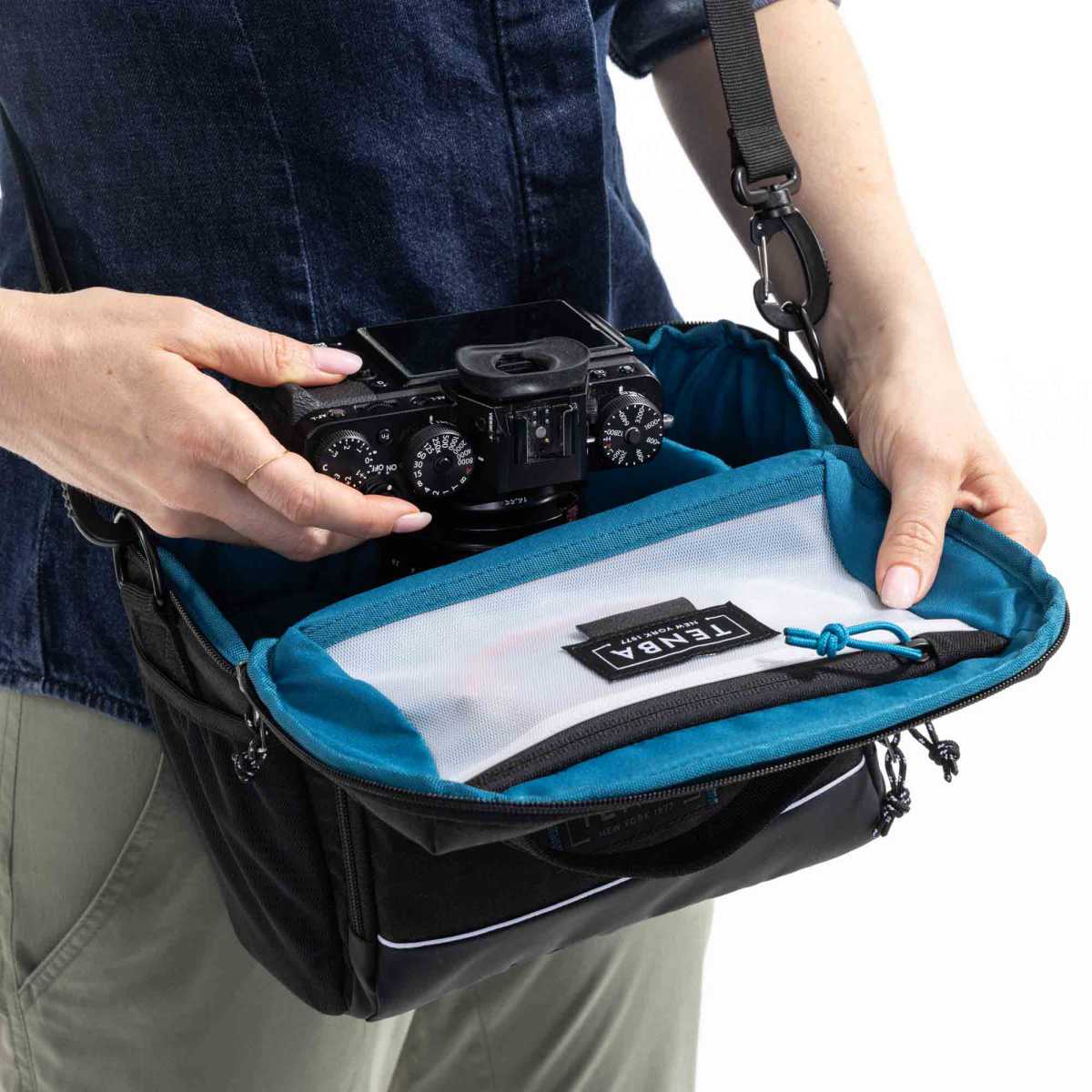 In de kleinste modellen is ruimte voor een mirrorless of compacte DSLR camera met een kitlens. In de grotere Skyline schoudertassen is voldoende ruimte voor een professionele DSLR met 3-5 lenzen.