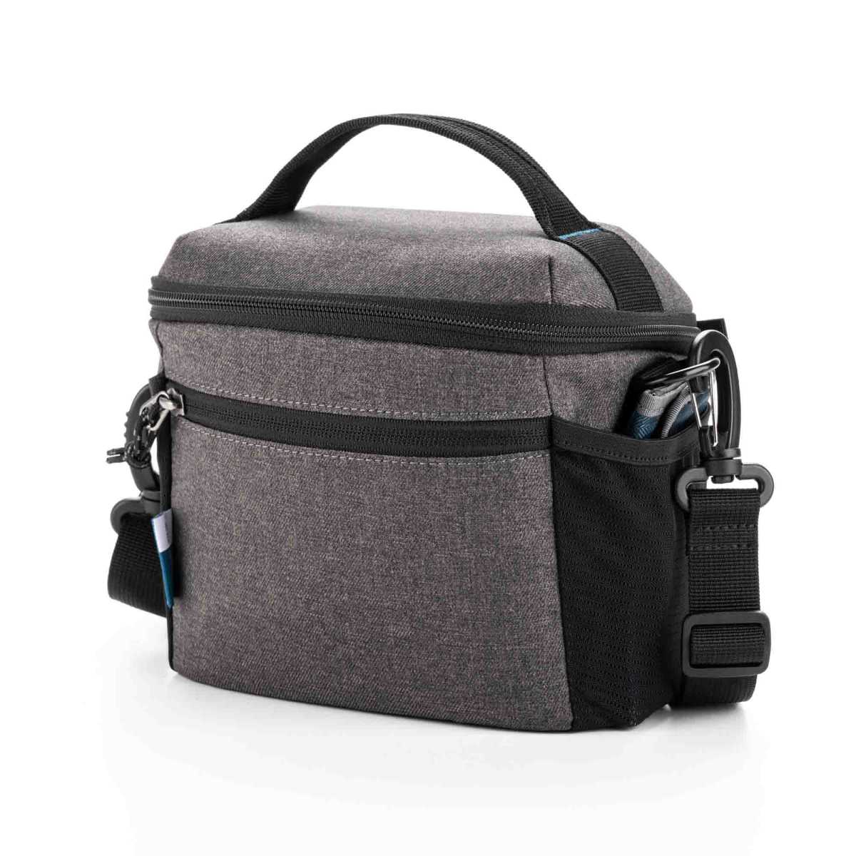 Aan de achterkant en aan de binnenkant van de klep zitten vakjes met een ritssluiting voor het opbergen van kleine accessoires of papieren. Aan de zijkant zit een mesh vak voor het meenemen van een waterflesje, tafel statiefje of een zonnebril. De schouderband van de Skyline V2 Shoulder Bag 12 en 13 is voorzien van anti-slip materiaal voor meer draagcomfort.